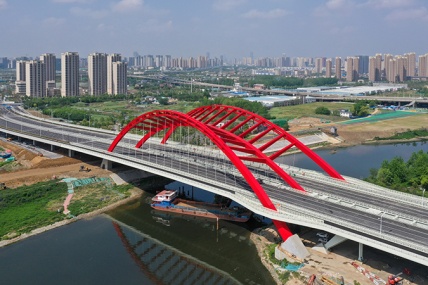 6月1日上午8時(shí),由安徽省交通建設(shè)股份有限公司承建的宿松路2標(biāo)段花園大道跨線橋正式建成通車。