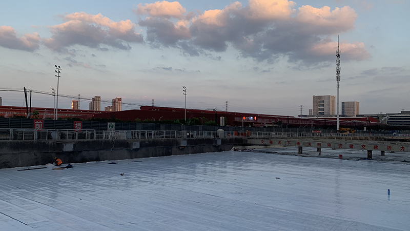 宿松路快速化改造工程地處城市建成區(qū),周邊環(huán)境復(fù)雜,施工面臨地下管網(wǎng)縱橫交錯、基坑開挖深度大、結(jié)構(gòu)防裂、防水要求高等難題。面對復(fù)雜而苛刻的條件,安徽交建項目部實現(xiàn)了多項行業(yè)“首創(chuàng)”:針對市政干作業(yè)基坑圍護(hù)樁垂直度控制不佳,我部采購2臺RSM-HGT(D)型超聲波成孔質(zhì)量檢測儀對樁基垂直進(jìn)行檢測、及時糾偏;施工過程中使用全站儀對旋挖鉆機(jī)桅桿垂直度進(jìn)行檢查、糾偏;為有效控制地道側(cè)墻混凝土裂縫,選擇摻加ART-MPC無機(jī)納米抗裂密實劑,提高混凝土抗裂性。養(yǎng)護(hù)采用水能量節(jié)水保濕養(yǎng)護(hù)膜,將液態(tài)水轉(zhuǎn)化為固態(tài)水,通過毛細(xì)管作用,源源不斷的向養(yǎng)護(hù)面滲透,同時吸收砼水化熱過程中蒸發(fā)水,在一個養(yǎng)護(hù)周期內(nèi)保證養(yǎng)護(hù)體表面保持濕潤,相對濕度≥90%;為避免變形縫滲水情況,施工過程中增設(shè)一道中埋式止水帶。同時針對止水帶安裝及焊接等薄弱環(huán)節(jié)加強(qiáng)控制,安排固定人員培訓(xùn),舉辦焊接比賽,提升焊接技術(shù)。