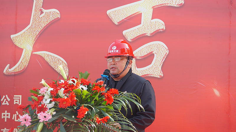 儀式上,鳳臺(tái)縣重點(diǎn)工程建設(shè)服務(wù)中心主任李曉輝在致辭中對(duì)安八二期項(xiàng)目13#樓封頂表示熱烈祝賀,向日夜奮戰(zhàn)在建設(shè)一線的全體建設(shè)者們致以崇高的敬意和真摯的問候,并希望在后續(xù)的建設(shè)中,全體人員一如既往強(qiáng)化安全管理,嚴(yán)把質(zhì)量關(guān),加快施工進(jìn)度,確保工程如期完成。