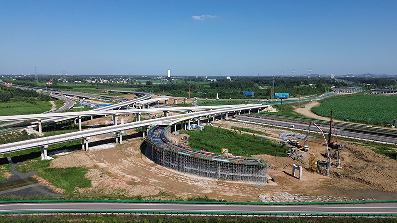 我標段承建的固蚌高速洪集樞紐二期工程,為落地式組合樞紐,向西距蚌埠北互通4.3公里,樞紐互通向南連接國道G329,設匝道收費站。項目建成后將實現與寧洛高速公路之間的交通轉換及國道G329交通直接上下高速公路的功能,便捷了蚌埠市從洪集出入口上下寧洛高速,緩解了該市東北部交通壓力。