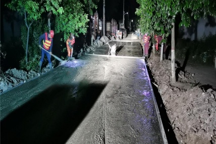 凌晨時(shí)分,城市的萬(wàn)千燈火漸弱,界首農(nóng)村公路項(xiàng)目工地上卻燈火通明,挖掘機(jī)、灰土拌合機(jī)、混凝土拌合站轟鳴聲此起彼伏,工程運(yùn)輸車來(lái)回穿梭,一片忙碌的景象。