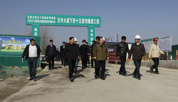 11月25日上午,安徽省委常委、合肥市委書記宋國權(quán),市長(zhǎng)凌云深入建設(shè)一線,實(shí)地調(diào)研了安徽交建承建的十五里河濕地工程和方興大道下穿十五里河隧道工程項(xiàng)目.宋書記、凌市長(zhǎng)一行到達(dá)方興大道項(xiàng)目駐地后,首先詳細(xì)了解了項(xiàng)目承建單位—安徽省交通建設(shè)股份有限公司的詳細(xì)情況;聽取了該項(xiàng)目建設(shè)的總體規(guī)劃、實(shí)施進(jìn)展、生態(tài)文明建設(shè)等重點(diǎn)工作的匯報(bào)。宋書記高興地指出,安徽交建作為合肥市大建設(shè)的先頭軍、排頭兵要有使命意識(shí)、責(zé)任擔(dān)當(dāng),工程建設(shè)過程中要注重生態(tài)環(huán)境保護(hù),牢固樹立和踐行生態(tài)文明觀、科學(xué)發(fā)展觀。