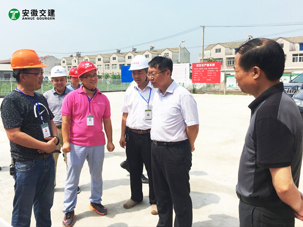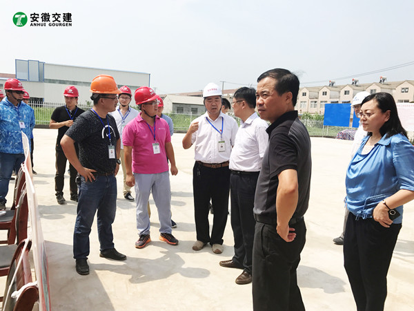 7月18日,安徽省交通控股集團(tuán)總經(jīng)理錢東升、建管處處長蘇新國、項目辦主任鄒正明等領(lǐng)導(dǎo)一行蒞臨安徽交建滁淮高速定長段路面一標(biāo)項目部進(jìn)行檢查指導(dǎo)。