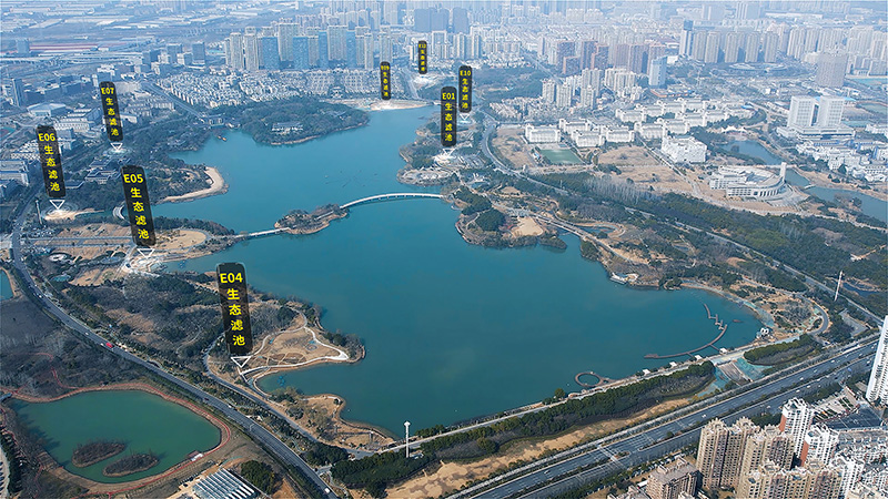 王建溝上游生態(tài)修復工程現(xiàn)場生態(tài)濾池布局圖(翡翠湖風景區(qū)內)